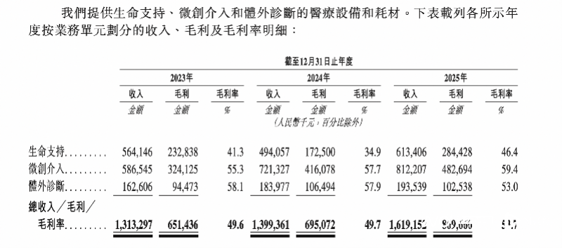 麦科田盈利改善核心在于毛利率持续优化。2023至2025年,公司整体毛利率从49.6%升至53.7%,累计提升4.1个百分点,主要得益于高毛利的微创介入业务占比提升、规模效应显现及供应链成本管控。