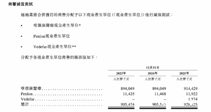 但并购也为麦科田埋下了巨额商誉隐患。截至2025年底,麦科田因收购Penlon、唯德康医疗等形成的商誉高达9.28亿元,占同期净资产18.76亿元的49.47%,近乎半壁江山。其中,仅收购江苏唯德康医疗一项就形成9.14亿元商誉,占商誉总额98.5%,是当期净利润的18倍。