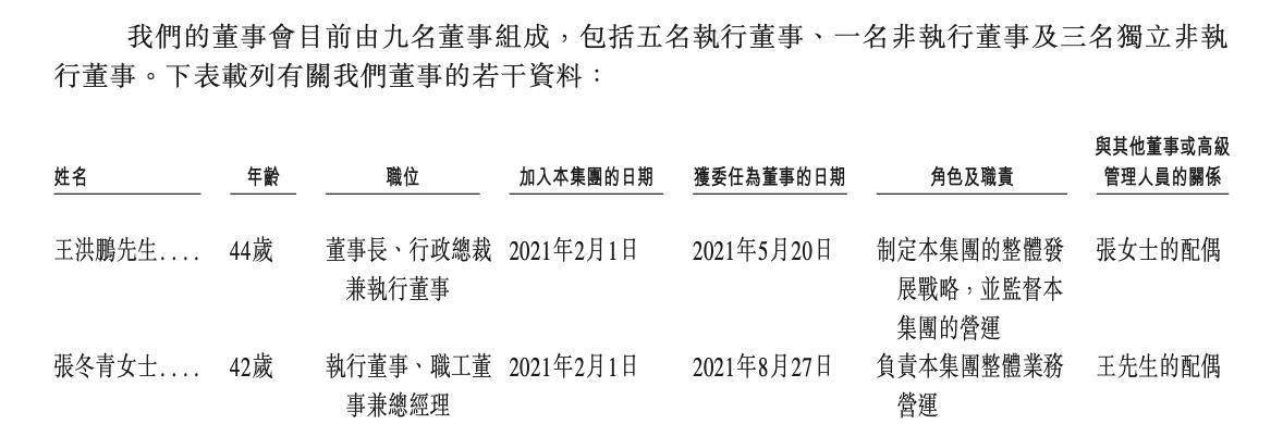 资料显示,王洪鹏,44岁,现任公司董事长、执行董事兼行政总裁。其于2021年2月至2021年5月期间担任监事,自2021年5月起出任执行董事,并自2021年10月起担任董事长。此外,其亦于公司多家附属公司担任董事兼总经理。