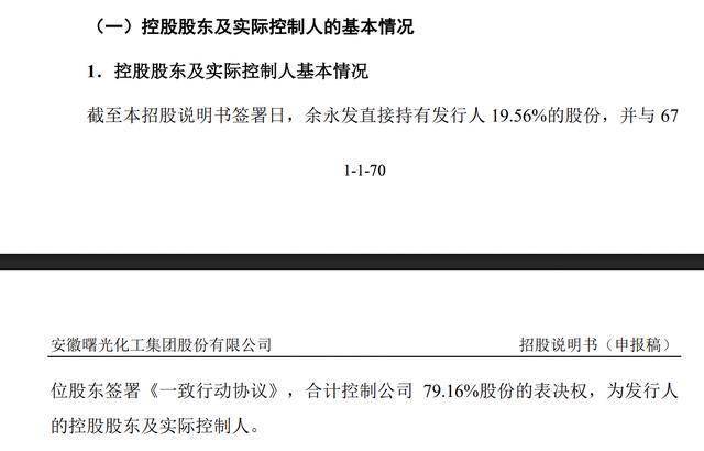 截至招股说明书签署日,余永发直接持有曙光集团19.56%的股份,并与67位股东签署《一致行动协议》,合计控制公司79.16%股份的表决权,为曙光集团的控股股东及实际控制人。