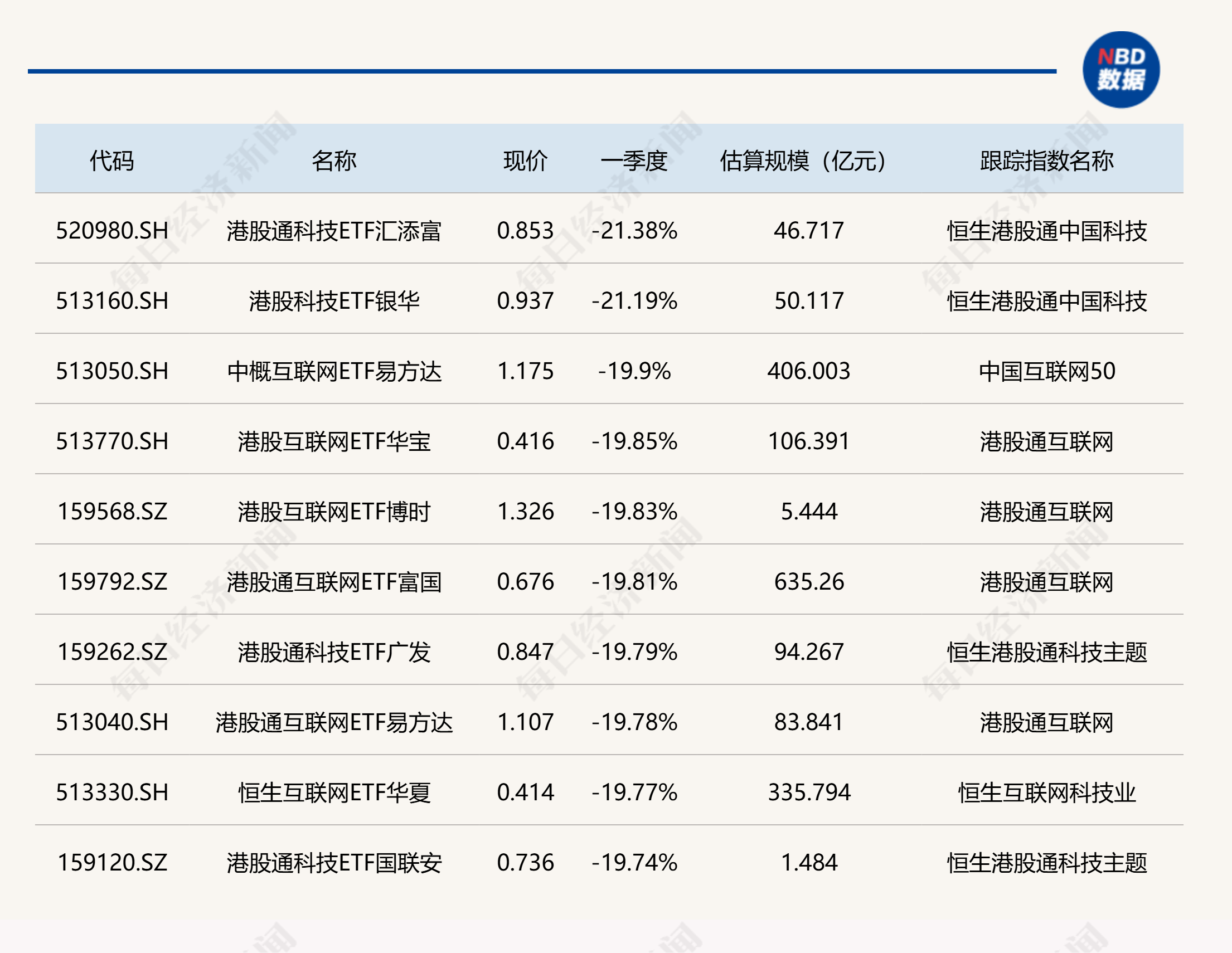 下跌方面,受港股连续调整影响,多只港股科技相关ETF一季度累计跌约20%。