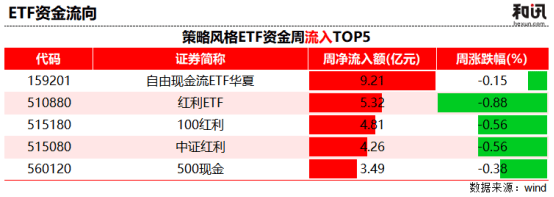 策略风格类ETF方面,红利策略依然保持高人气。