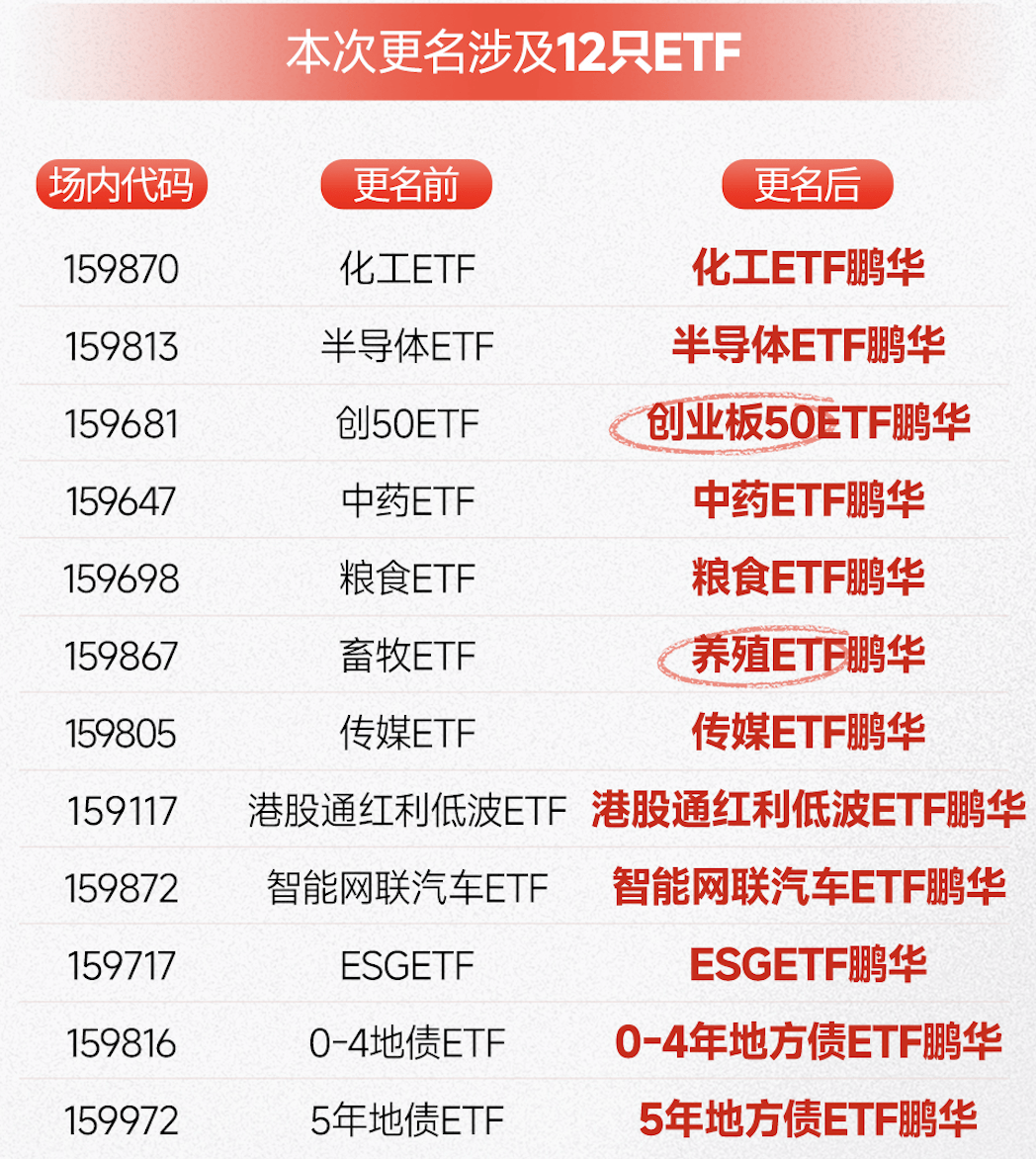 ETF鹏华,齐了!鹏华旗下所有ETF完成规范化更名
