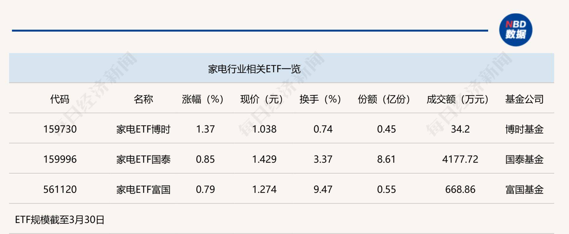 行业ETF风向标丨市场交投平淡,家电ETF博时(159730)半日涨1.37%