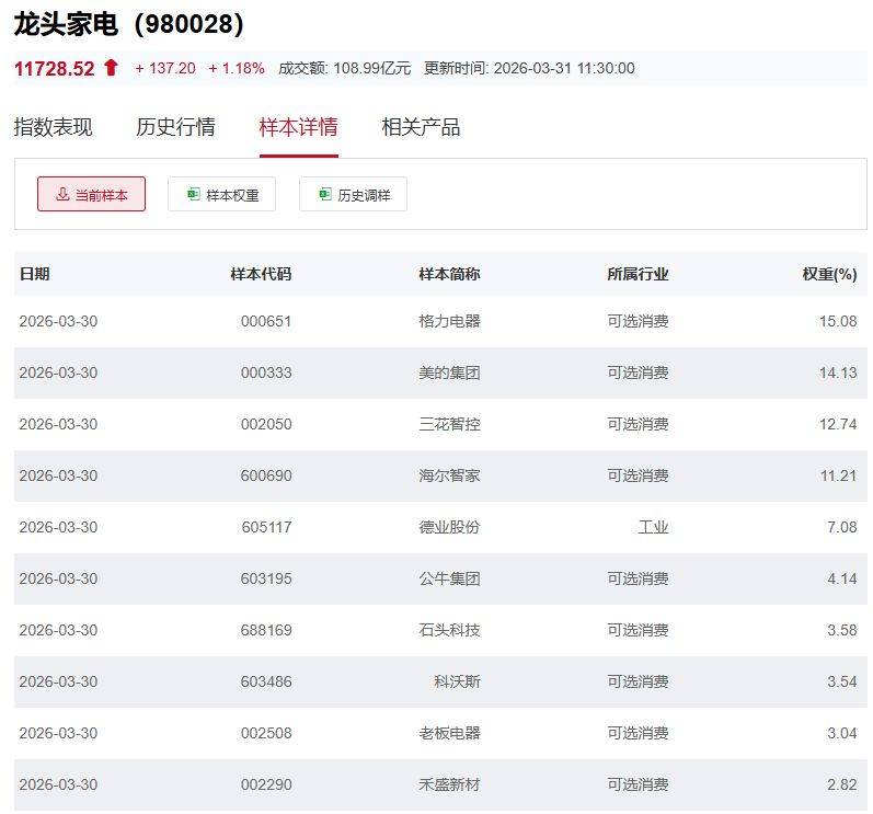国证龙头家电指数反映沪深北交易所中家电行业优质上市公司的市场表现。该指数将权重更多的配置在细分领域的龙头企业中,如清洁电器、厨房电器以及家电零部件逆变器等细分领域。