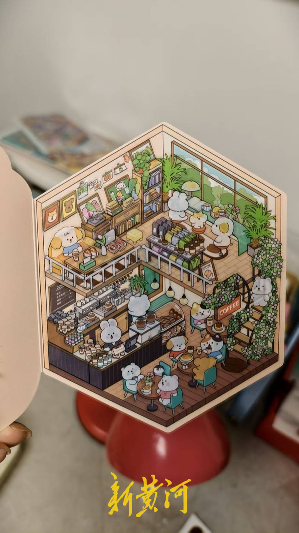不同于传统手账贴纸的平面化、碎片化,造景贴纸的魅力是“多层堆叠”和“微缩还原”。记者现场体验了一把,一张底板、一把镊子,再加上一套贴纸,20分钟左右就能拼出一个简单的场景,层层叠加后,原本平面的贴纸变得立体,仿佛一个迷你微缩世界。“我每次贴的时候,都会全身心投入,看着零散的‘小鼻嘎’变成完整的场景,那种秩序感和成就感,特别治愈。”小园说。