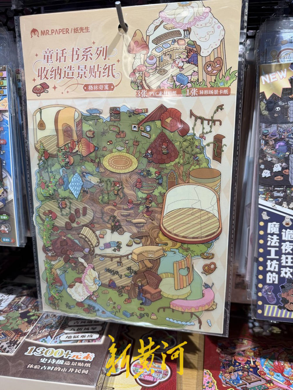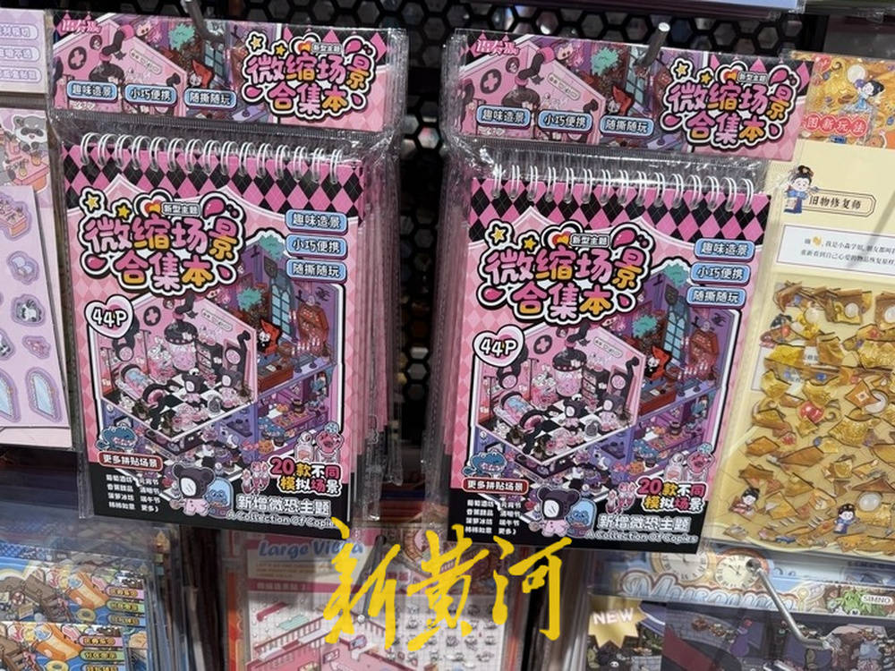 记者在货架前看到,造景贴纸按风格分类摆放,既有适合低龄学生的简易款,也有带复杂故事线、适合成年人的进阶款,涵盖“小吃街”“甜品铺”“ins小屋”等主题,部分款式还加入了可旋转、可拉动的动态组件。“这款‘百味小铺’卖得最好,每天能出十几张,很多女孩买回去贴完,还会再来回购其他款式。”店员一边整理货架,一边给记者展示热销款,“我们每周都会补货,有时候晚一步,热门款就没货了。”