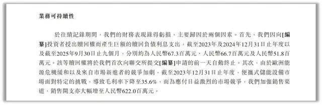 根据德兰明海的说法,业绩的亏损主要是两方面的原因。一是向部分股东授出可赎回普通股权利,为此累计支付巨额赎回负债利息,2023年-2025年9月分别为6730万元、6670万元、5180万元;二是由于毛利率下滑而大幅提高了销售开支,2023年年末销售开支达到6.22亿元。