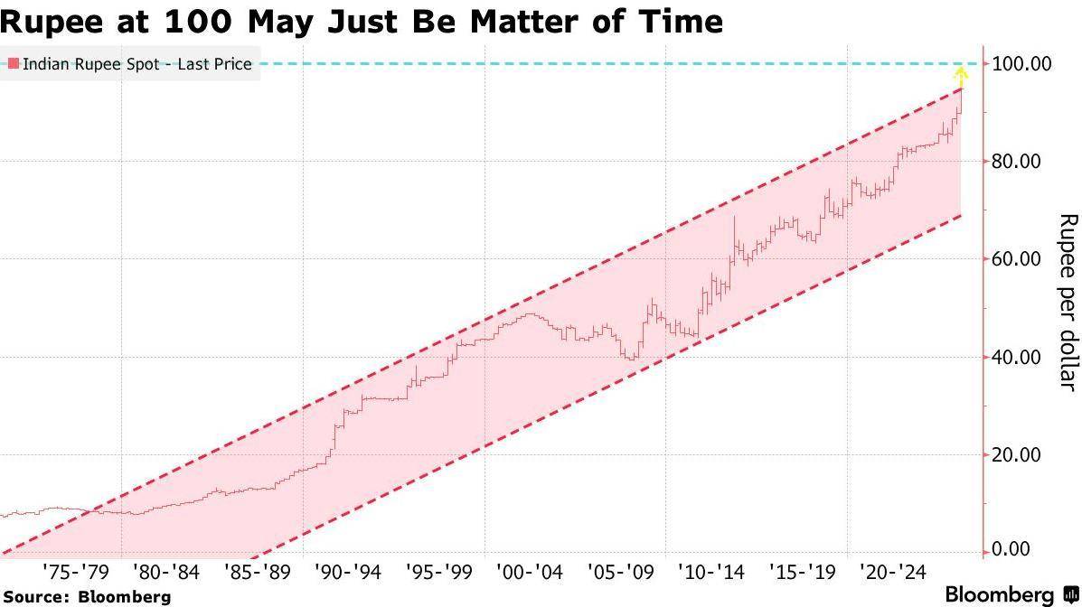 智通财经获悉,对于约85%原油依赖进口的印度而言,油价暴涨不仅引发了严重的输入型通胀担忧,更直接动摇了货币市场的信心。市场策略师警告称,如果伊朗战争拖延日久,印度卢比可能会跌至创纪录的1美元兑100卢比甚至更低。而印度当局为遏制卢比过去一年来约10%的跌幅所做的努力可能只能提供暂时的缓解。