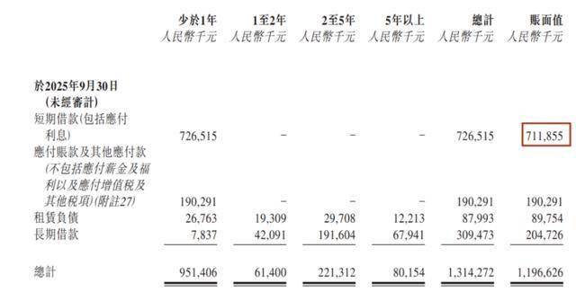 截至2025年9月30日,公司账上现金及现金等价物余额仅有6064.3万元,即期借款却有7.12亿元。