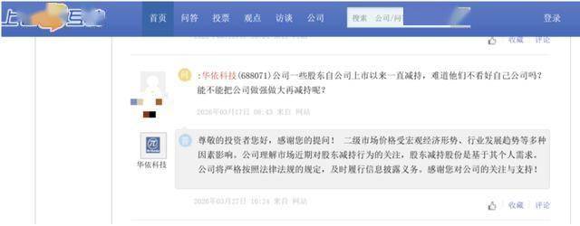针对股东频繁减持的情况,有投资者在交易所互动平台向华依科技提问:“公司一些股东自公司上市以来一直减持,难道他们不看好自己公司吗”。