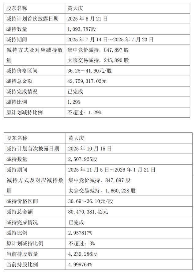 具体来看,董事、副总经理、财务总监潘旻于2023年5月31日-2023年7月20日减持公司0.26%的股份,变现1042.12万元;于2025年7月17日-2025年8月11日再次减持公司0.14%股份,变现约512.67万元;