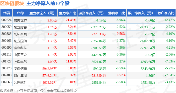 从资金流向上来看,当日区块链板块主力资金净流出1.19亿元,游资资金净流出3.54亿元,散户资金净流入4.73亿元。区块链板块个股资金流向见下表: