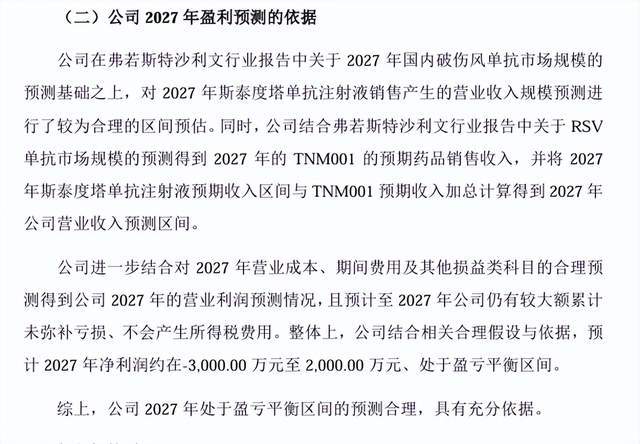 但在企业何时能够盈利的问题上,泰诺麦博推迟盈利预期的做法无疑让市场倍感失望。在对首轮审核问询函的回复时,公司信誓旦旦地表示,公司2027年可以盈利,表示2027年公司盈利具有充分依据。