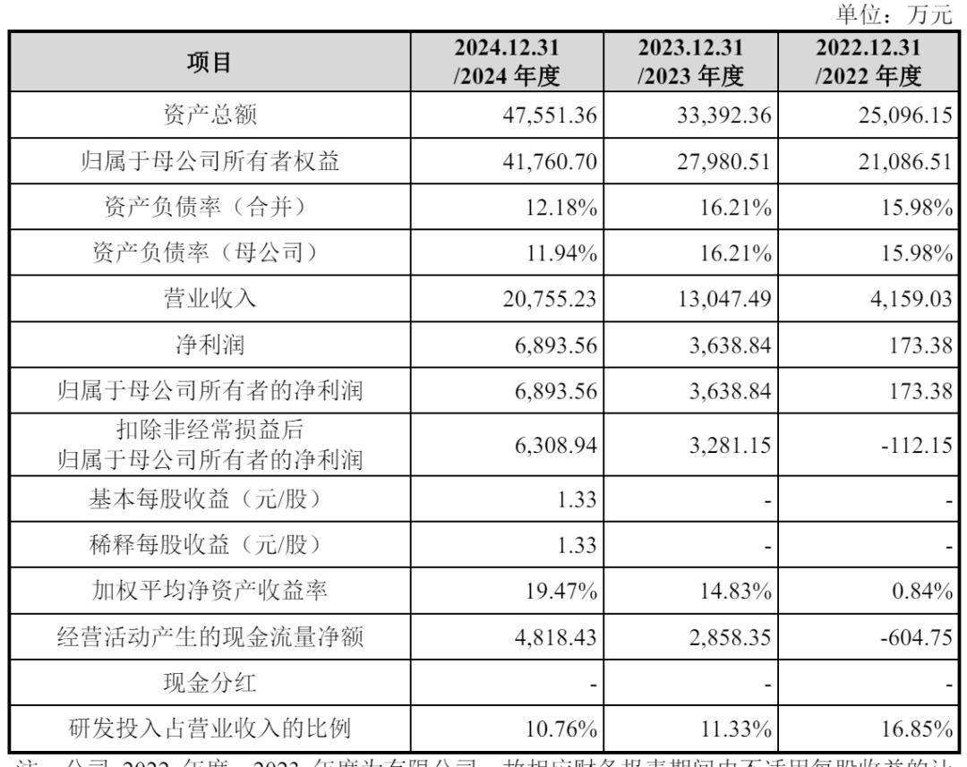 招股书显示,芯密科技2022年、2023年、2024年营收分别为4159万元、1.3亿元、2.08亿元;净利分别为173万元、3639万元、6894万元;扣非后净利分别为-112万元、3281万元、6309万元。