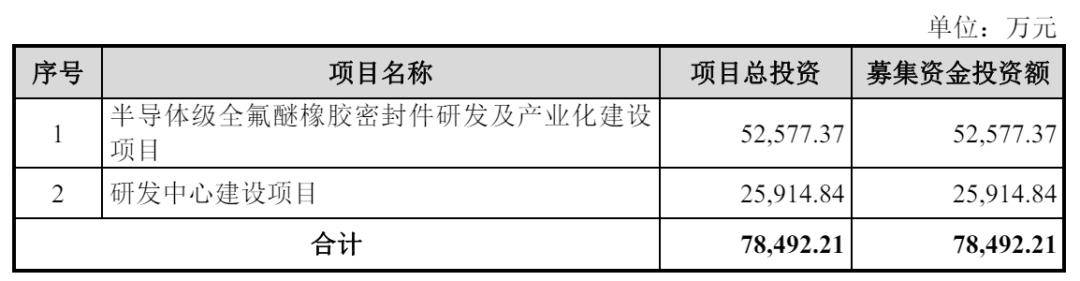 芯密科技原计划募资7.85亿元,其中,5.26亿元用于半导体级全氟醚橡胶密封件研发及产业化建设项目,2.59亿元用于研发中心建设项目。