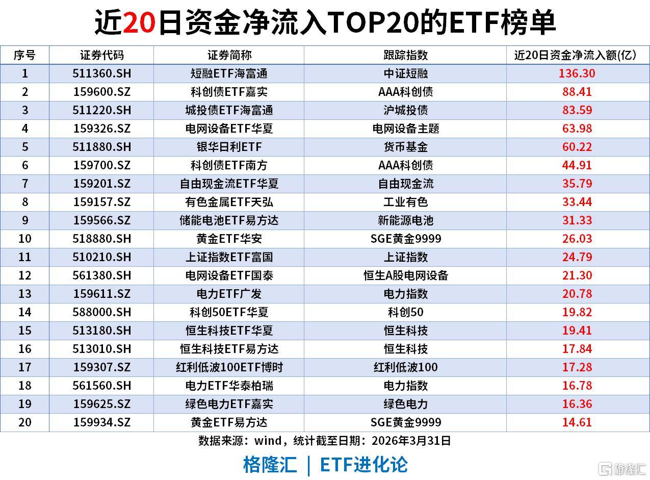 近20日资金净流入(截至2026-03-31)