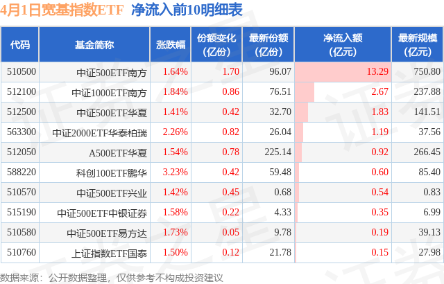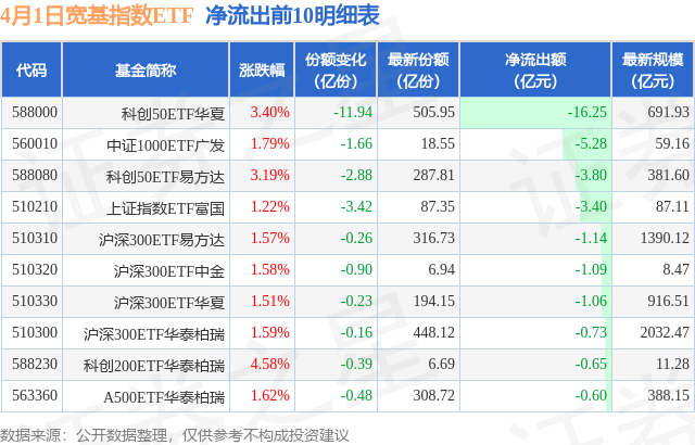 【ETF观察】4月1日宽基指数ETF净流出17.78亿元
