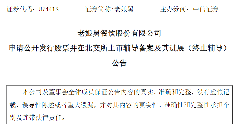 对企业而言IPO不仅是企业命运的转折点,更是中国新生代投资者在复杂市场中的深刻试炼。3月18日,老娘舅发布公告披露,公司上市辅导终止,4年时间老娘舅两次冲击A股,却都以失败告终。