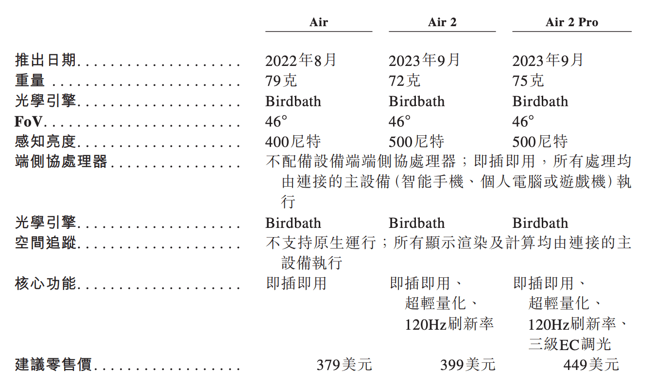 其中,Air系列是入门级产品,用户基础更大。该产品聚焦沉浸式观影、主机游戏及移动办公等高频场景,佩戴体验与普通眼镜相近,支持即插即用,能连接手机、PC和游戏主机。
