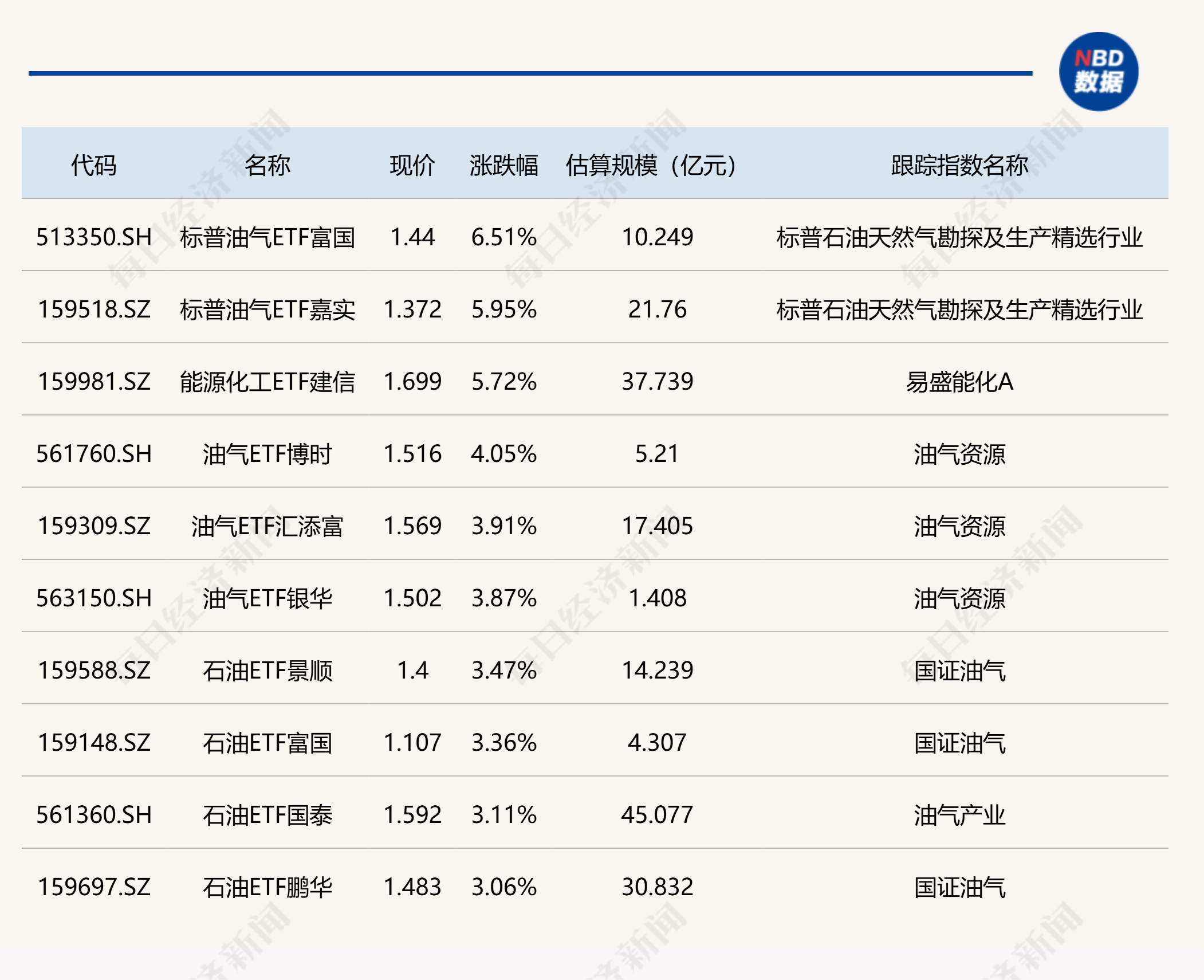 ETF涨跌幅方面,标普油气ETF富国涨超6%。