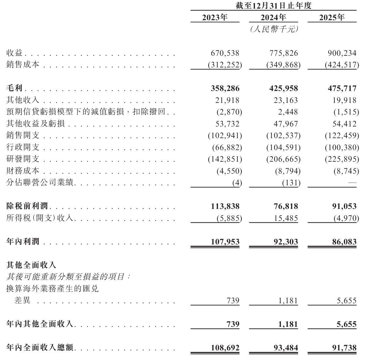 招股书显示,普源精电2023年、2024年、2025年营收分别为6.71亿元、7.76亿元、9亿元;毛利分别为3.58亿元、4.26亿元、4.75亿元;期内利润分别为1.08亿元、9230万元、8608万元。