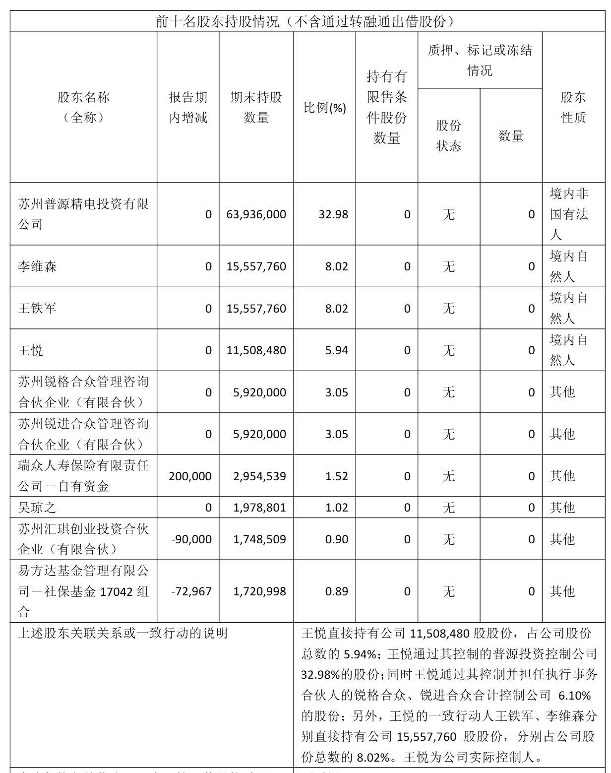 截至2025年12月31日,苏州普源精电投资有限公司持股为32.98%,李维森持股为8.02%,王铁军持股为8.02%;王悦直接持股为5.93%,苏州锐格合众管理咨询合伙企业(有限合伙)、苏州锐进合众管理咨询合伙企业(有限合伙)分别持股为3.05%;