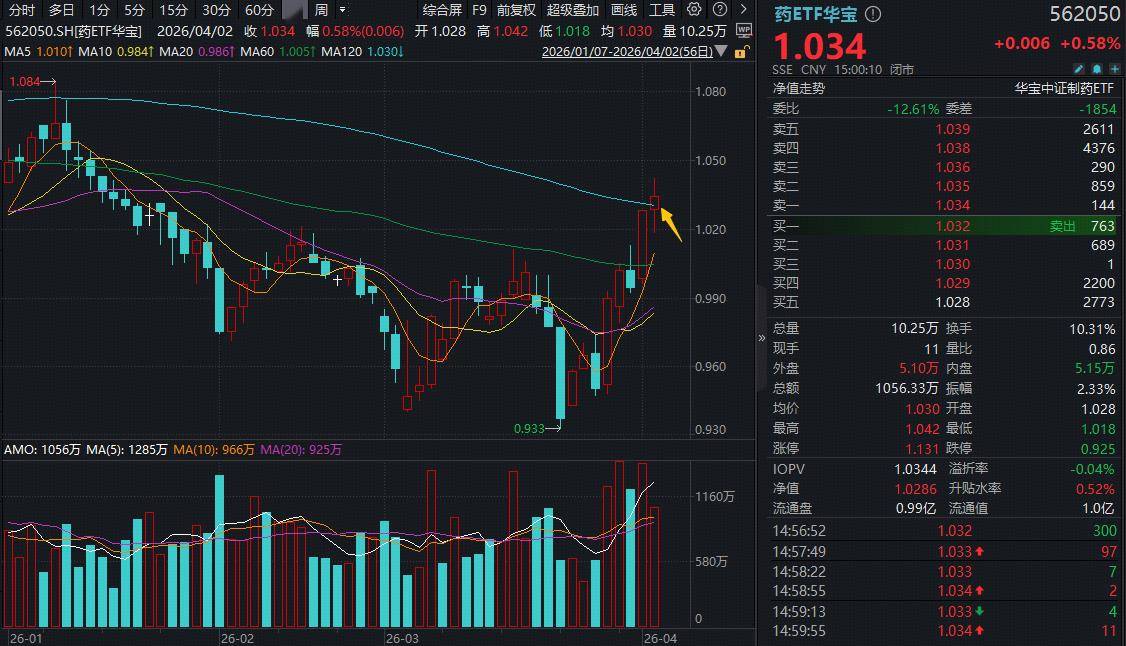 A股制药板块个股涨跌参半。创新药龙头三生国健绩后狂飙13%创历史新高!中药龙头云南白药、济川药业同步助攻,场内唯一表征制药板块的药ETF华宝( 562050)收涨0.58%逆市连阳,收盘站上半年线。