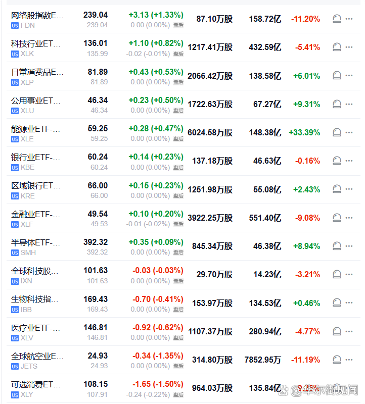 周四(4月2日),美股行业ETF多数收涨,网络股指数ETF收涨1.33%,科技行业ETF涨0.82%,能源业ETF涨0.47%,半导体ETF涨0.09%,可选消费ETF跌1.50%。
