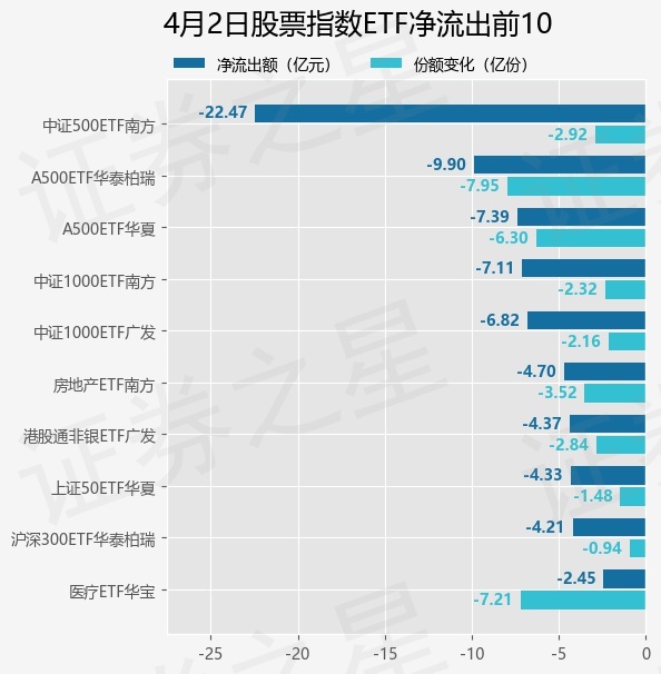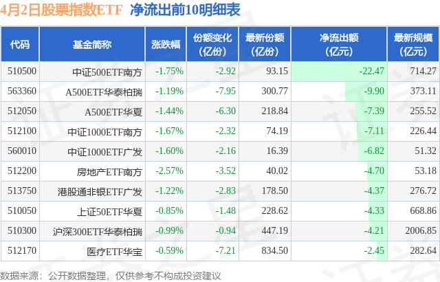 当日有211只股票指数ETF基金出现资金净流出,其中净流出排首位的是中证500ETF南方(510500),份额减少了2.92亿份,净流出额为22.47亿元。