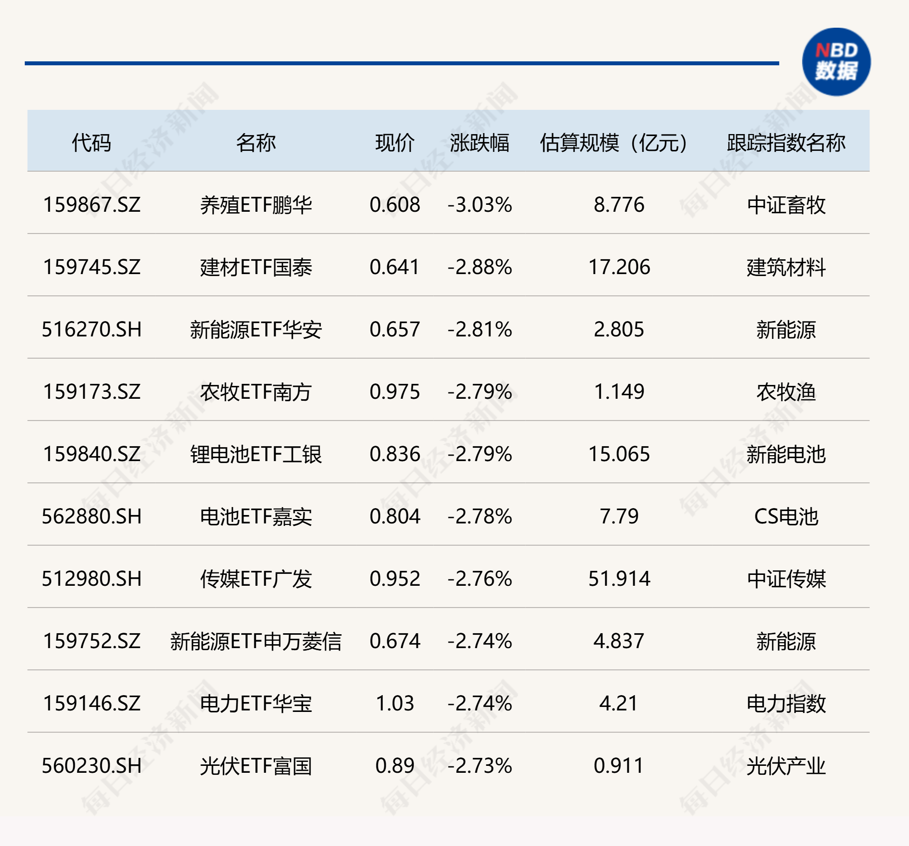 下跌方面,养殖、建材等ETF跌超2%。