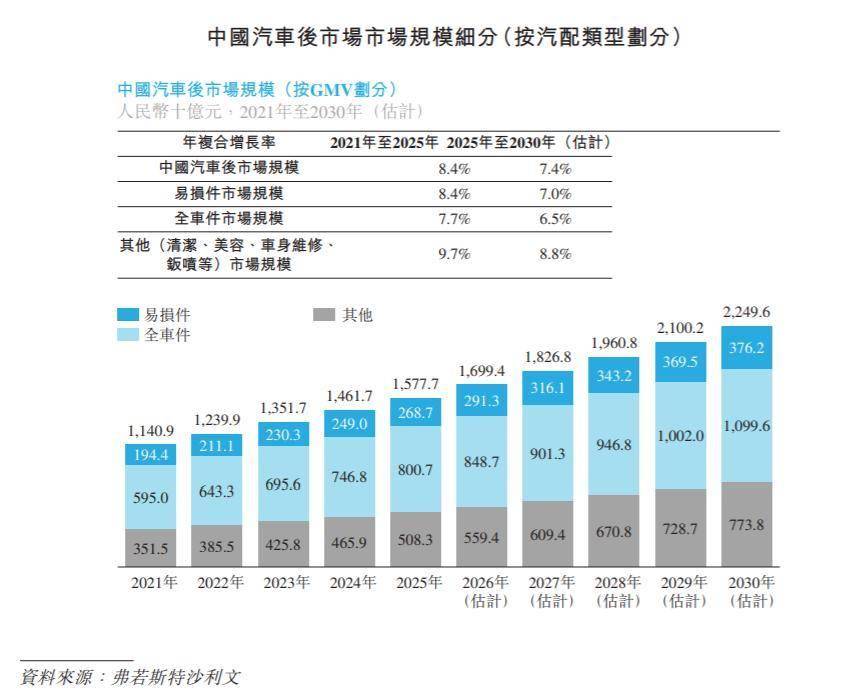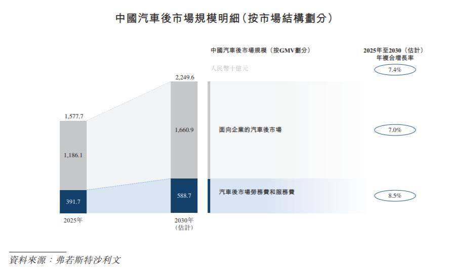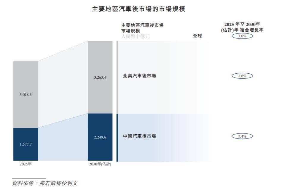 全球而言,汽车后市场是一个成熟的行业,其GMV预计将由2025年的人民币99,721亿元增长至2030年的人民币115,461亿元,年复合增长率达3.0%。在这些市场中,中国的汽车后市场预计将维持最高增速,而北美则持有最大的市场份额。
