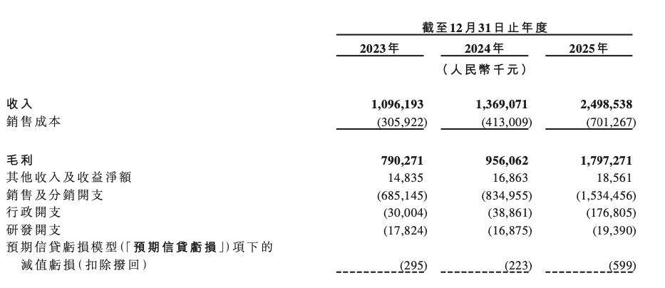 其中,营销开支分别约为 5.7 亿元、7.2 亿元、13.74 亿元,占比均超八成。2025 年,公司营销开支更是同比激增达 84%,与同期营收 82% 的增速几乎持平。