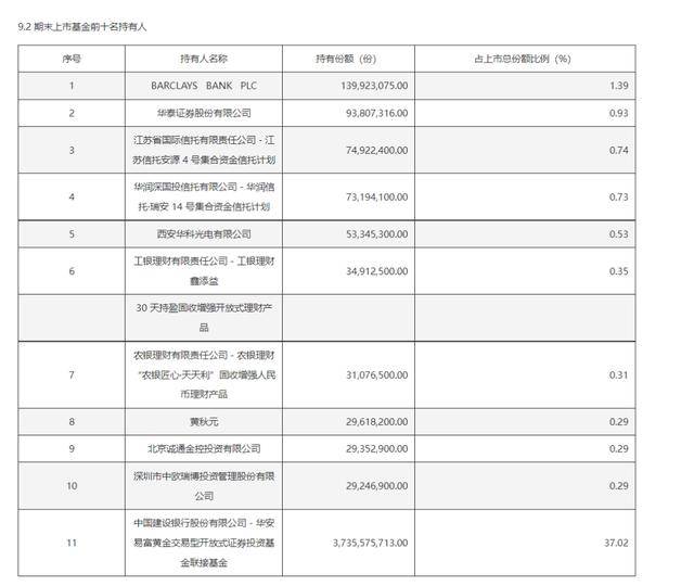 2025年底的华安黄金ETF前十名持有人