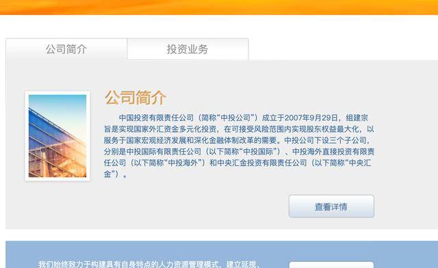 中央汇金是中国投资有限责任公司三大全资子公司之一