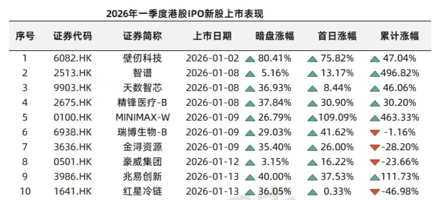 这只是2026年开年港股IPO持续火热的一个缩影。Wind数据显示,截至2026年3月31日,一季度港股市场共有40家企业完成IPO上市,同比大幅增长150%;合计募集资金1099.27亿港元,同比激增约489%,仅用78天便突破千亿港元募资大关,创下历史最快破千亿纪录,也刷新了2021年以来的季度募资新高。