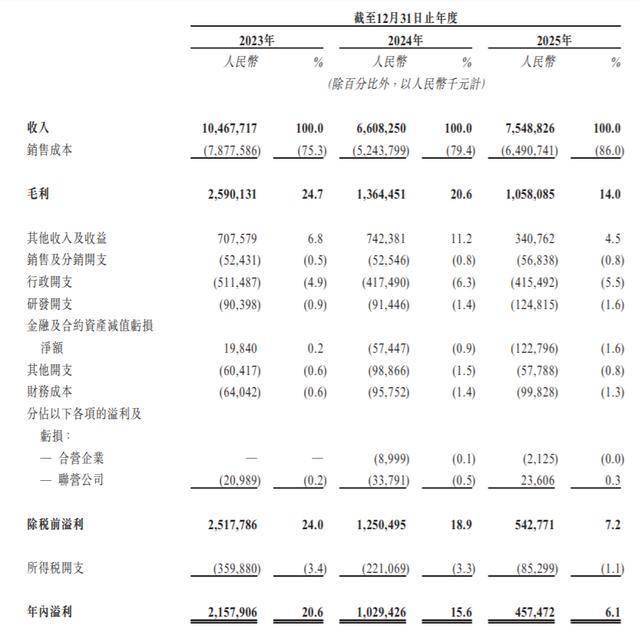 2023年、2024年、2025年,天华新能收入分别约为104.68亿元、66.08亿元、75.49亿元;年内溢利分别约为21.58亿元、10.29亿元、4.57亿元。