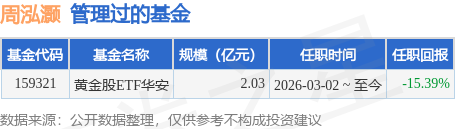 周泓灏先生:中国国籍,硕士研究生,2020年7月应届毕业加入华安基金,历任指数与量化投资部研究员、基金经理助理。2026年3月2日起任华安中证沪深港黄金产业股票交易型开放式指数证券投资基金基金经理。