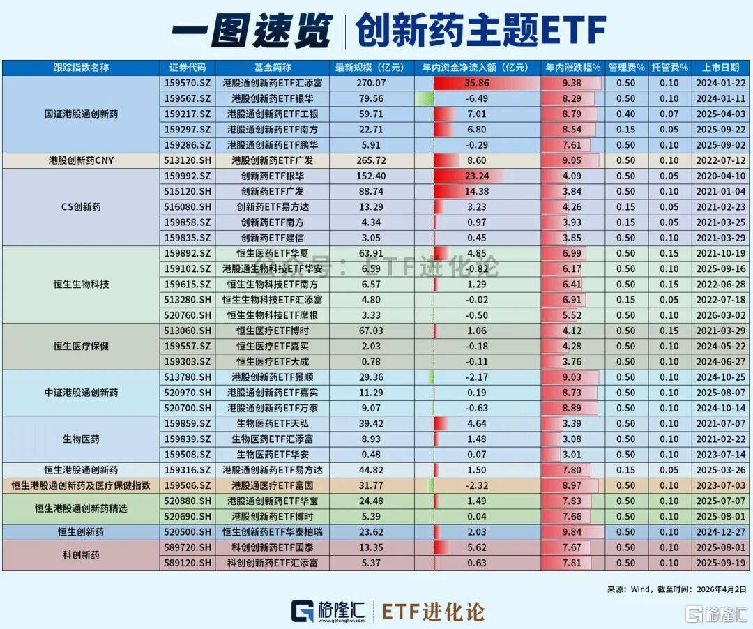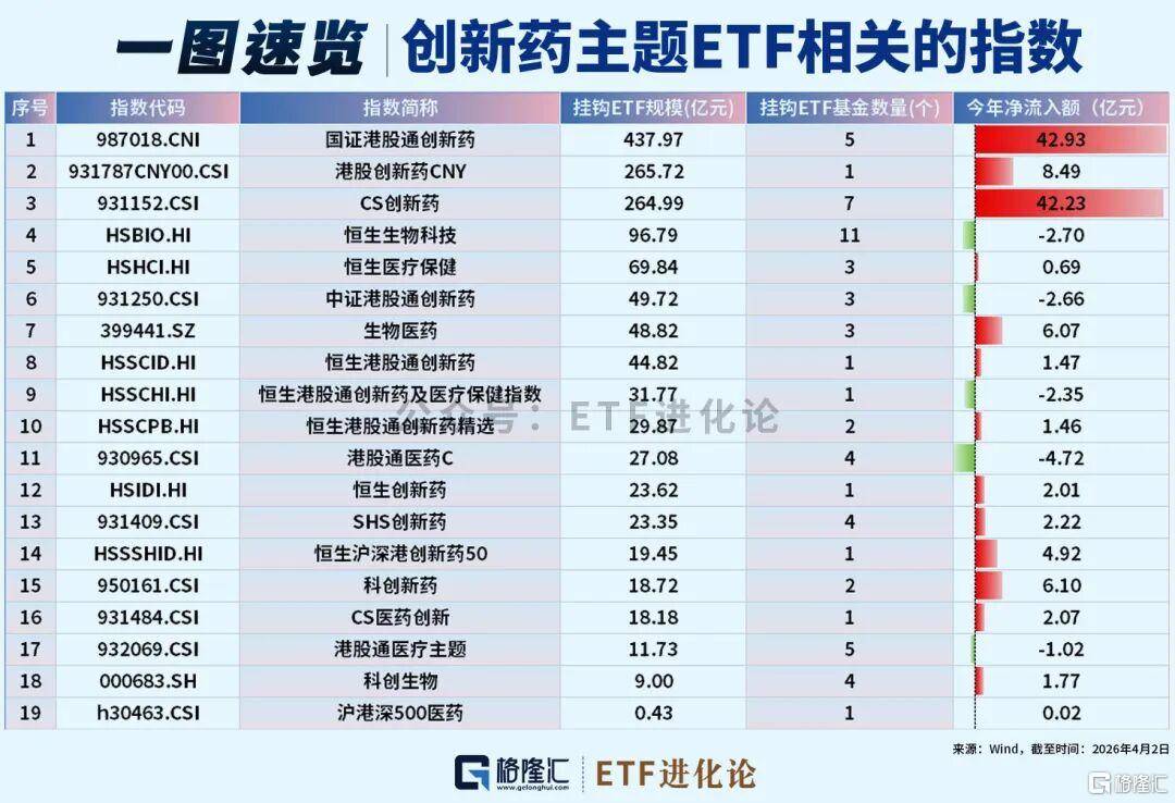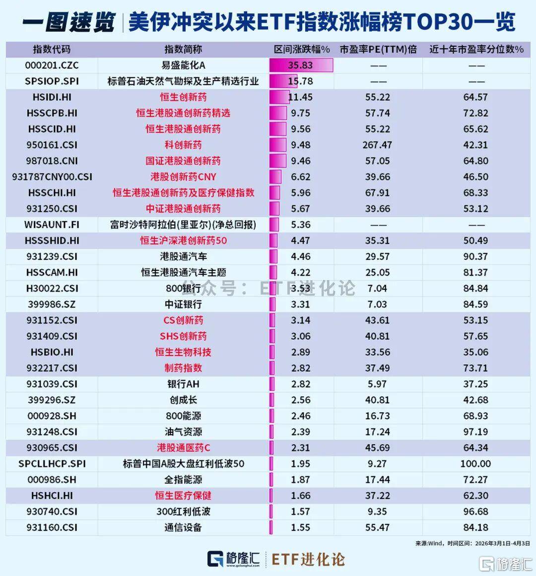 截至4月3日,美伊冲突以来,ETF指数涨幅TOP30榜单里,一半以上被创新药包场,恒生创新药、恒生港股通创新药精选、恒生港股通创新药、科创新药涨超9%。