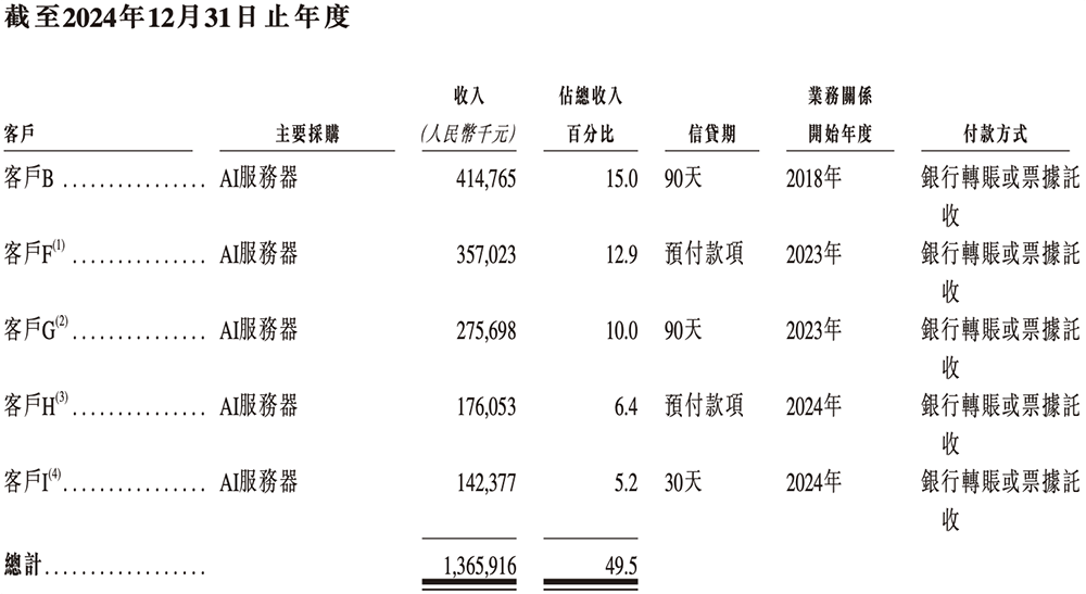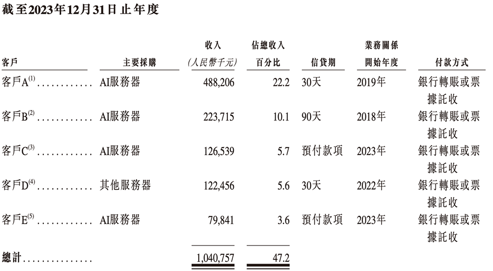 2023年、2024年、2025年,来自五大客户的收入分别占其总收入的47.2%、49.5%、61.4%。