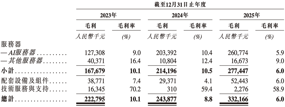 2025年,其AI服务器及其他服务器的毛利率均同比减少。