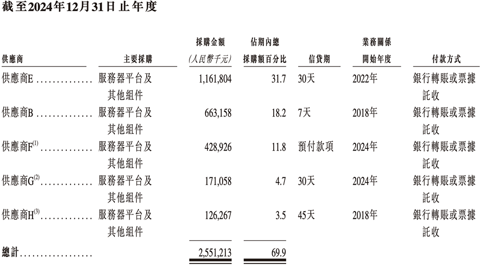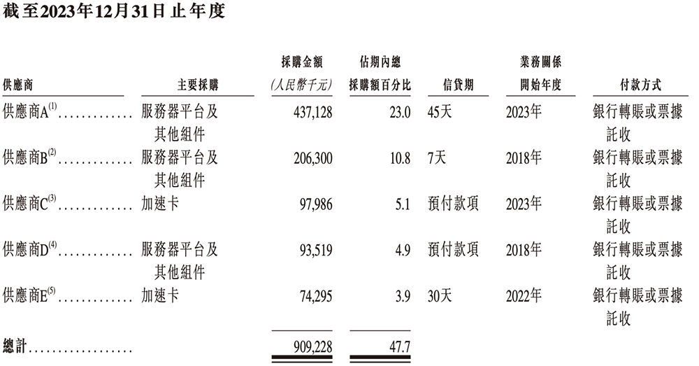安擎们的供应商主要提供服务器平台及其他组件,包括CPU、主机板、加速卡、硬盘驱动器及软件解决方案。