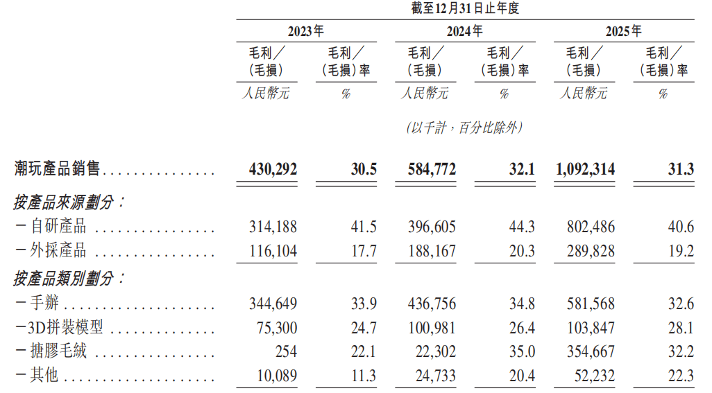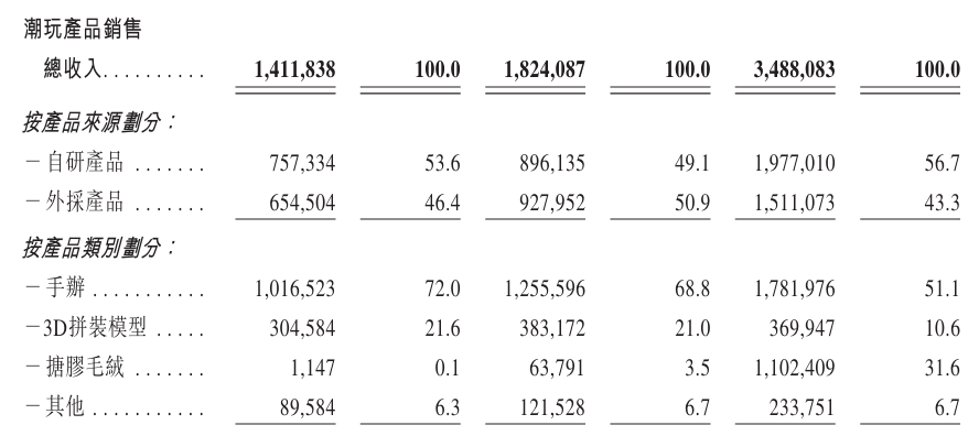 数据印证了这一点:其自研产品收入占GMV的比例已经超过55%,根据弗若斯特沙利文的报告,这一比例在中国潮玩集合品牌中位列第一。