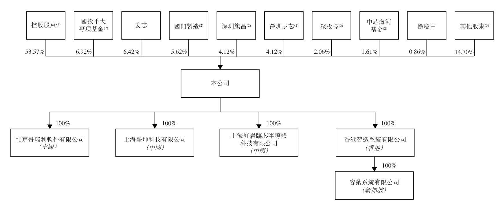 IPO前,姜志持股为6.42%,徐庆中持股为0.86%,国投重大专项基金持股为6.92%,国开制造持股5.62%,深圳旗昌、深圳辰芯分别持股为4.12%;