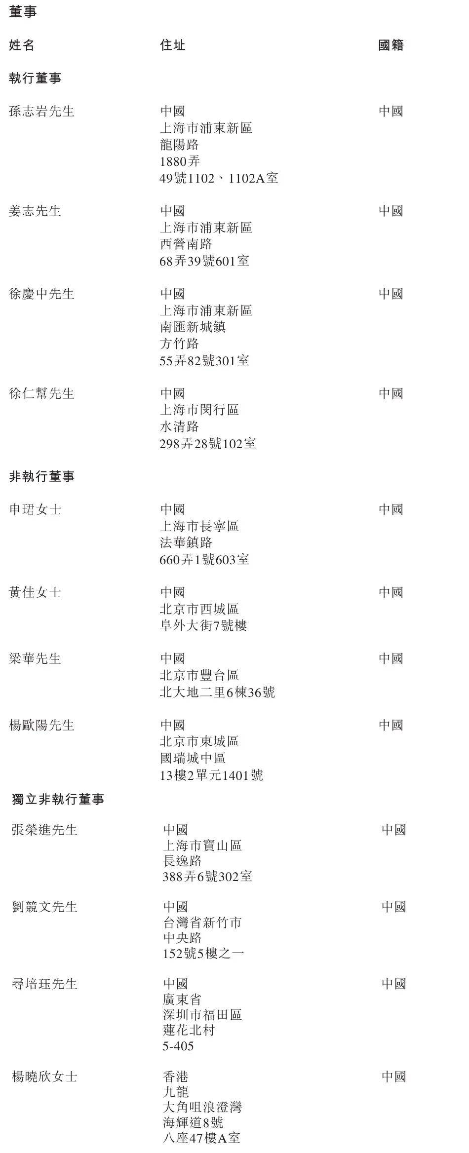 哥瑞利执行董事分别为孙志岩、姜志、徐庆中、徐仁帮;非执行董事分别为申珺女士、黄佳女士、梁华、杨欧阳;独立非执行董事分别为张荣进、刘竞文、寻培珏、杨晓欣女士。