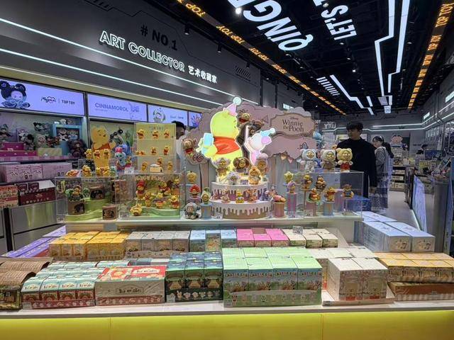 一位正在挑选迪士尼小熊维尼盲盒的年轻女性消费者告诉记者,她是看到社交平台上的分享后专程来购买的。“这些联名款在其他潮玩店也能买到,不一定非要在TOP TOY买,但今天逛到了就顺手买了。”当被问及是否知道TOP TOY有哪些自有IP时,她表示“不太清楚”。
