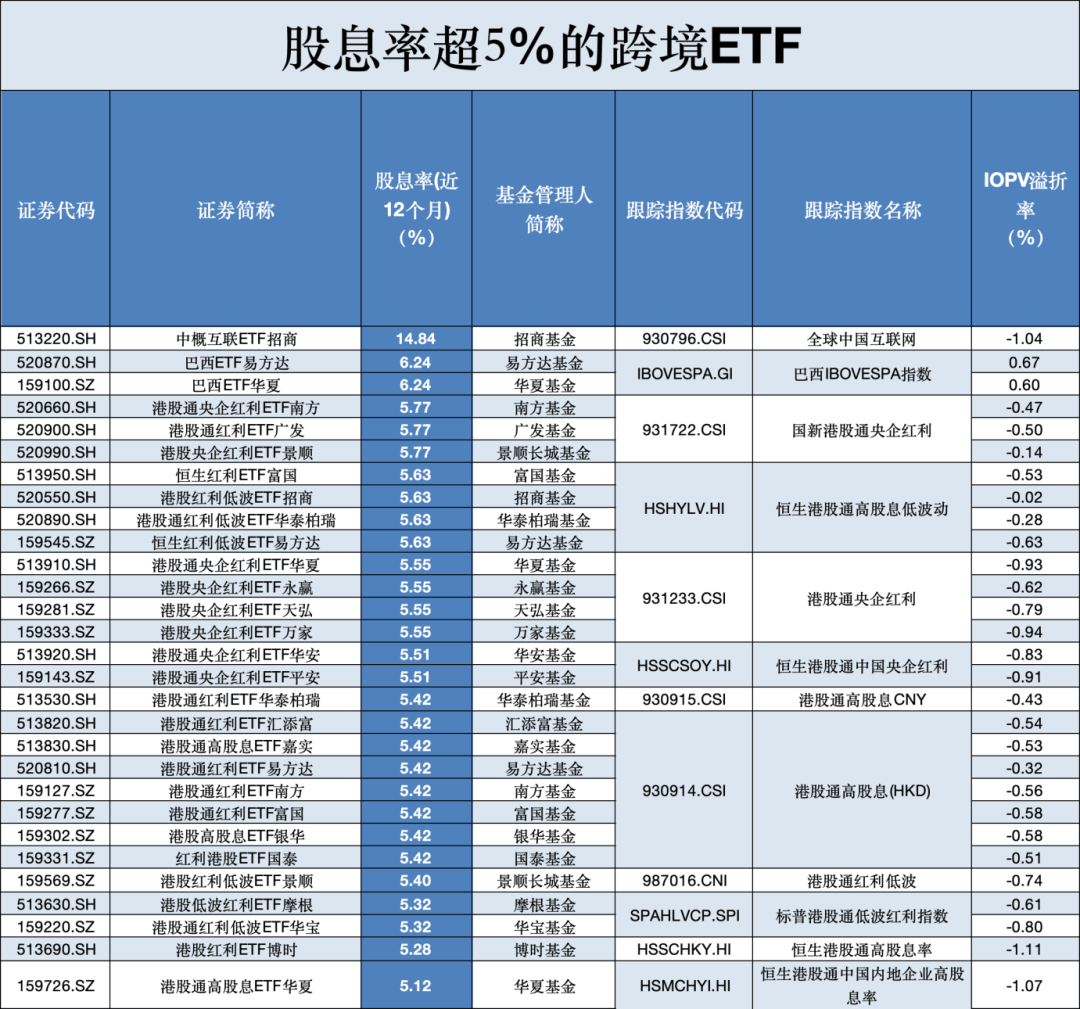 【导读】股息率超过5%的ETF有哪些?