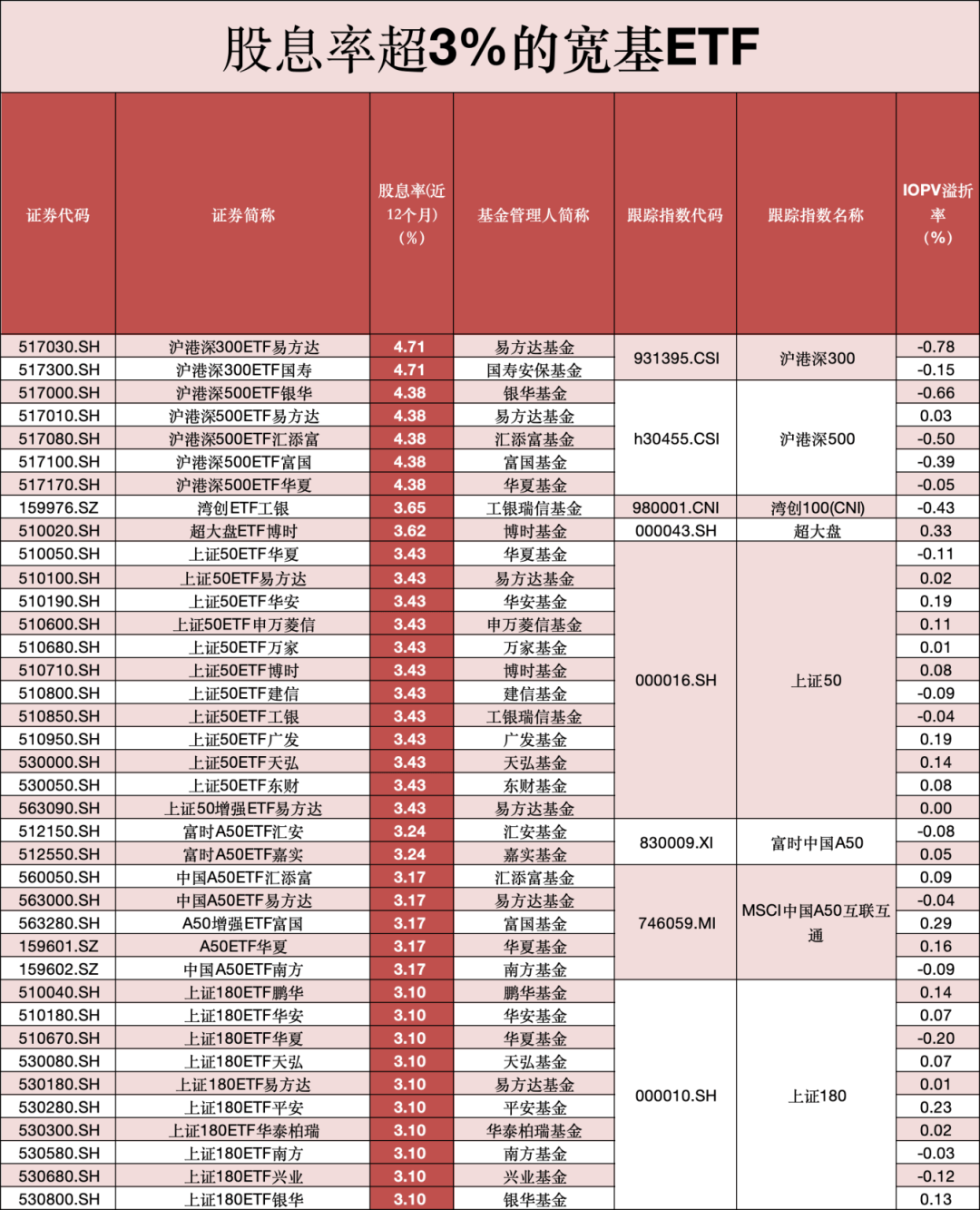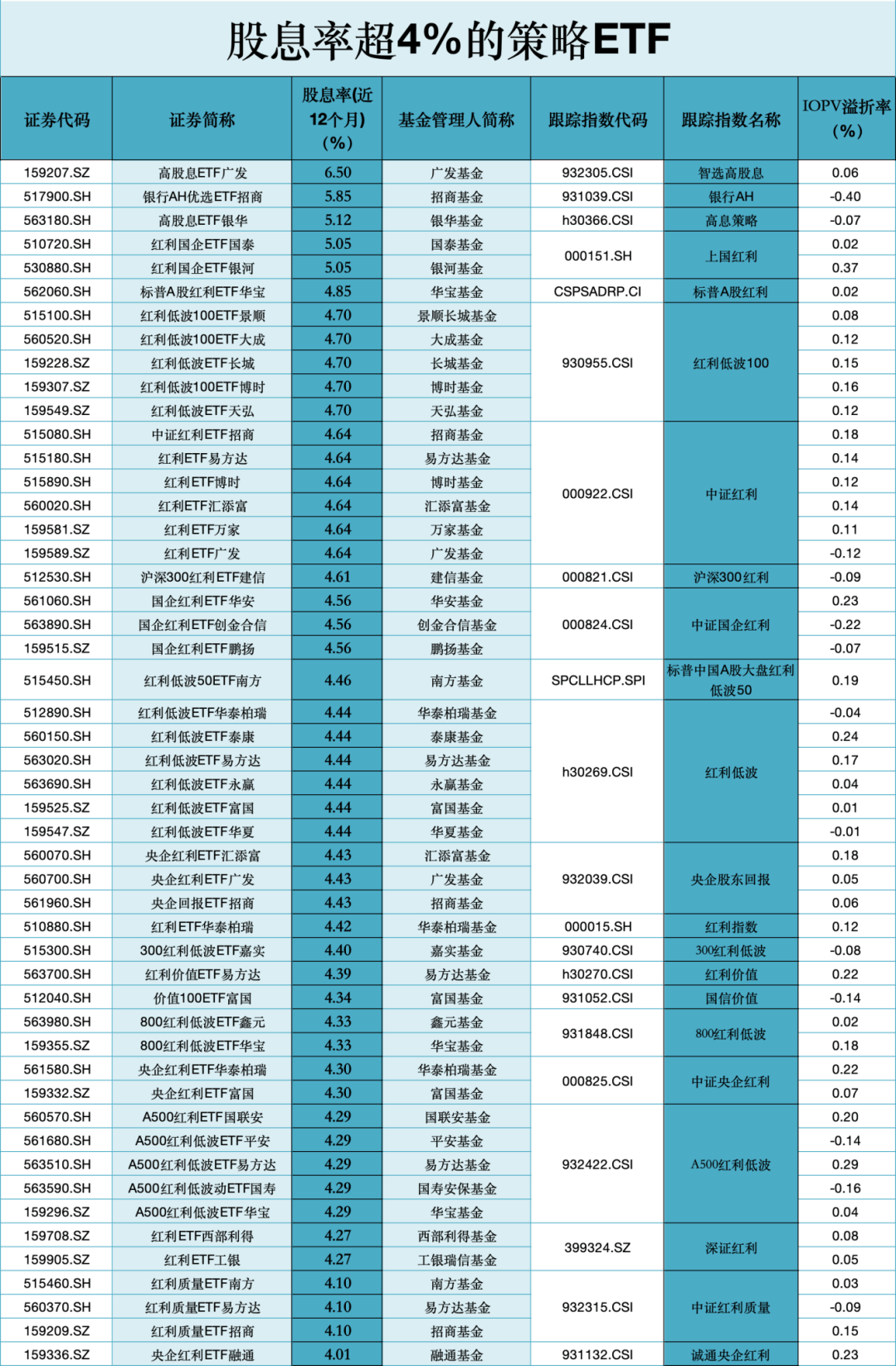 今天,ETF君梳理了股息率超5%的跨境ETF、股息率超4%的策略ETF和行业主题ETF,以及股息率超3%的宽基ETF清单,供大家了解。