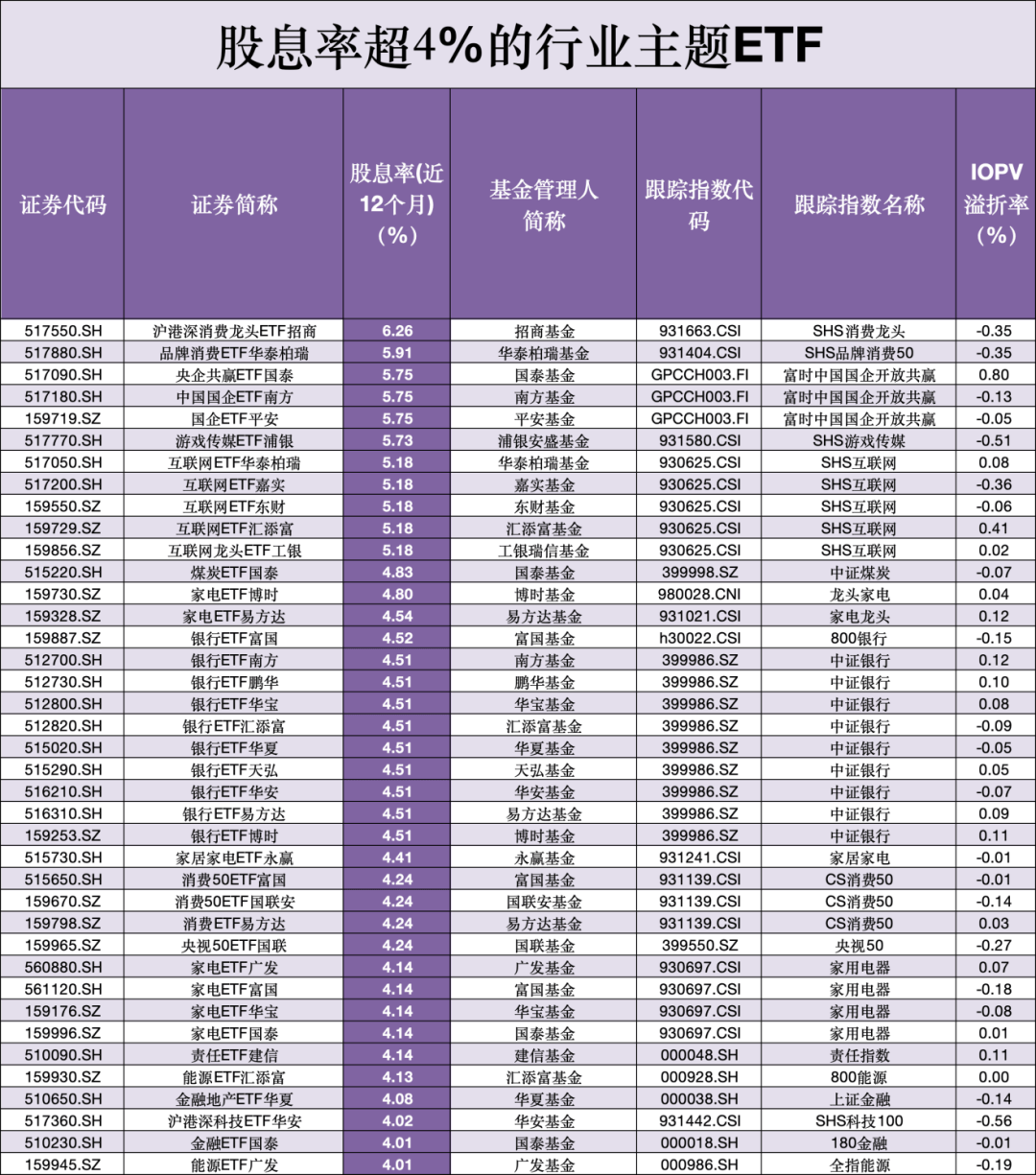 高股息率ETF“菜单”来了!