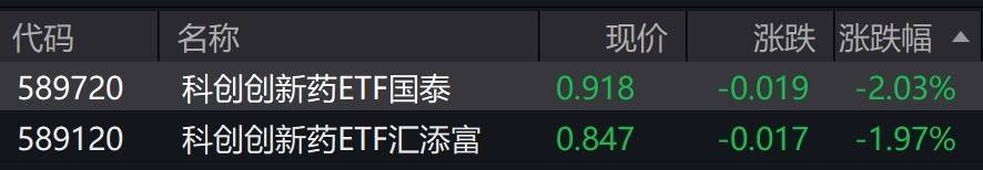 创新药概念股走弱,博瑞医药、荣昌生物跌超4%,特宝生物、益方生物-U跌超2%。